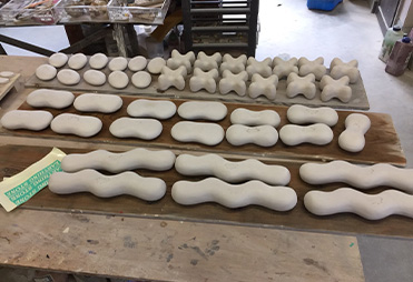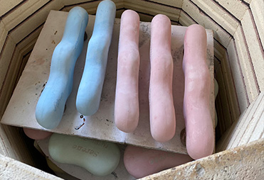 遠赤外線を発光する数種類の自然鉱石とオーガニック珪藻土などの成分を配合し、磁器上に練り混ぜ、窯で焼き、水分を調整しながら難しい作業の工程を経て70度の温度で施術のために最大40分の保熱ができるストーンの焼成に成功しました!